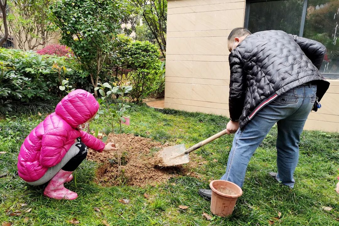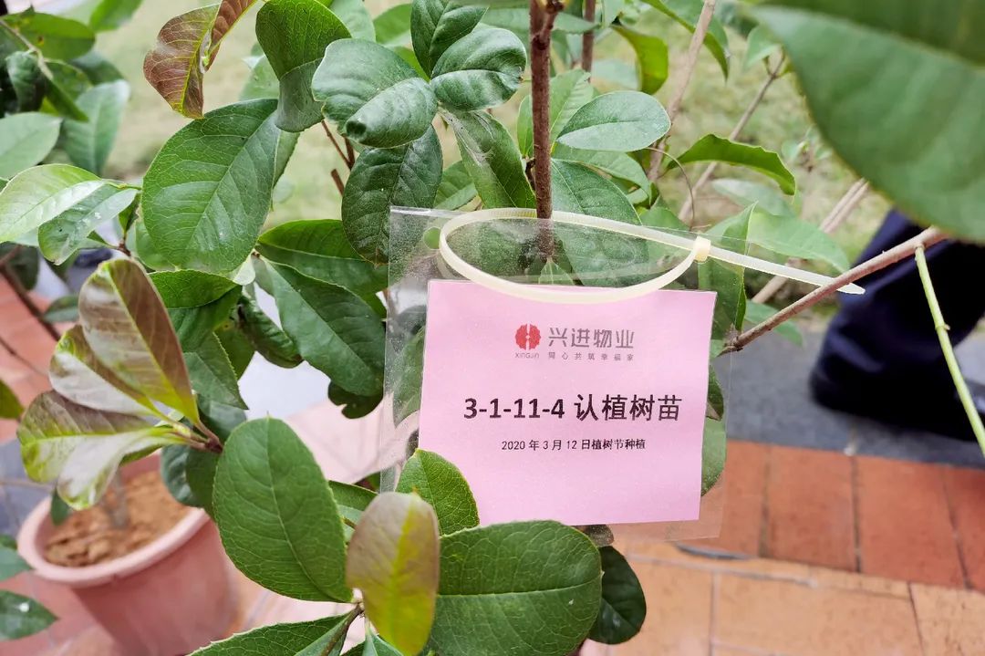 一同在小區(qū)園區(qū)種下綠植并為其掛牌