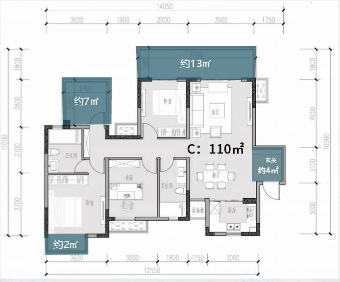這個戶型放到全南寧,足以吊打很多大牌房企。市面上75平的戶型,別人的客廳開間是3.1-3.25米,但興進卻做到了驚人的3.5米,贈送達19㎡,每間房的尺度,都不小。置業(yè)顧問說,興進珺府的公攤極低,僅有15%左右(市面上普遍為20%左右),所以有了更多的贈送空間。除了贈送多之外,興進贈送的陽光房,送得很靈活巧妙。仔細看,發(fā)現(xiàn)它的陽光房,既可以獨立做一間房,與主臥“融合”,把陽光房與主臥改造成舒適的大套間。要不要改,全看你的喜好。