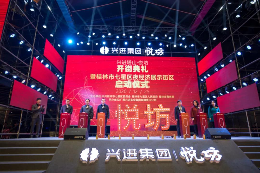 潮悅桂林,音浪來(lái)襲!12月25日晚,備受關(guān)注的興進(jìn)塔山?悅坊開(kāi)街典禮暨桂林市七星區(qū)夜經(jīng)濟(jì)展示街區(qū)啟動(dòng)儀式,在世界漓江畔、人文塔山旁隆重舉行!