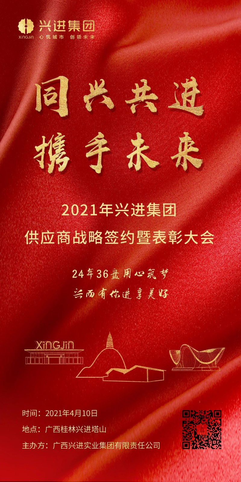 活動(dòng)當(dāng)天,將邀請(qǐng)桂林主流媒體到場(chǎng)記錄活動(dòng)全過程,并有同步線上直播,未能現(xiàn)場(chǎng)參會(huì)的供應(yīng)商伙伴可在線互動(dòng)觀看。 同興共進(jìn),攜手未來,興進(jìn)集團(tuán)將以更加長(zhǎng)遠(yuǎn)的目光和思考,開放更加廣闊的合作空間,與眾多合作伙伴篤定同行,開啟2021年合作新篇章!