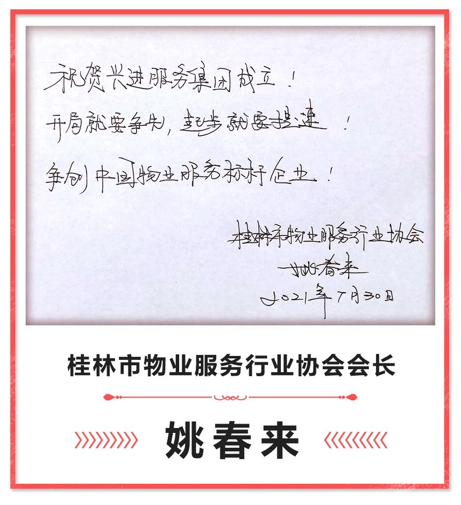 2021年8月1日,桂林市興進(jìn)物業(yè)服務(wù)有限責(zé)任公司正式更名為廣西興進(jìn)物業(yè)服務(wù)集團(tuán)有限責(zé)任公司,在興進(jìn)物業(yè)成立20年之際,象征著又朝公司"5年計(jì)劃"邁進(jìn)一步。