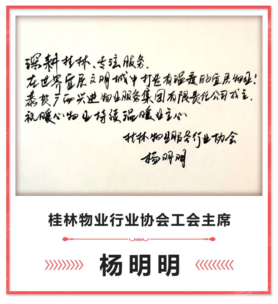 2016年興進(jìn)物業(yè)不止步,全方位創(chuàng)新管理模式。2018年,開(kāi)設(shè)"六興"服務(wù),陸續(xù)成立興管家、興小廚、興家政、興學(xué)院、興中介、興學(xué)堂。為提升服務(wù)品質(zhì),2019年,漓江壹號(hào)、漓江郡府、南寧珺府陸續(xù)加入金鑰匙國(guó)際聯(lián)盟。