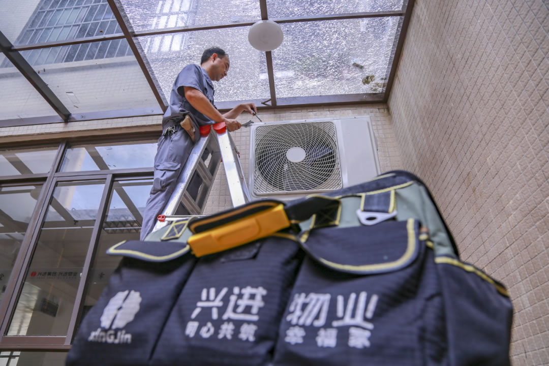 興進物業(yè)人在維修空調(diào)