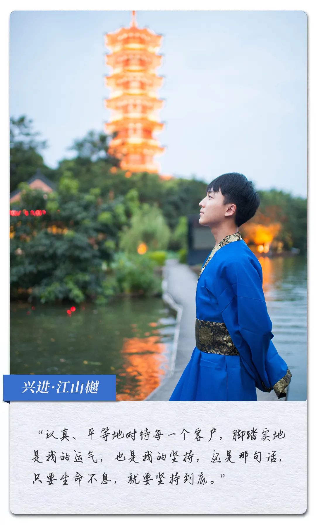 在來(lái)興進(jìn)之前我是做導(dǎo)游的,除了工作,平時(shí)沒事就喜歡看書,希望通過知識(shí)來(lái)充盈自身,現(xiàn)在的同事都戲稱我是一個(gè)"詩(shī)人"。