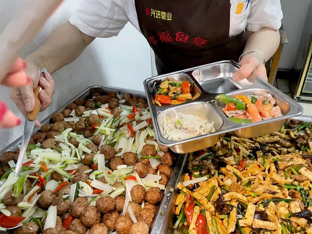 自從有了業(yè)主食堂,她的小小心愿得以實現,"我們的食堂菜品不僅種類豐富,而且足夠營養(yǎng)健康,大家吃得很放心。在吃飯的時候還能與鄰居聊天,感謝興進物業(yè)為我們營造這樣的溫馨食堂!"