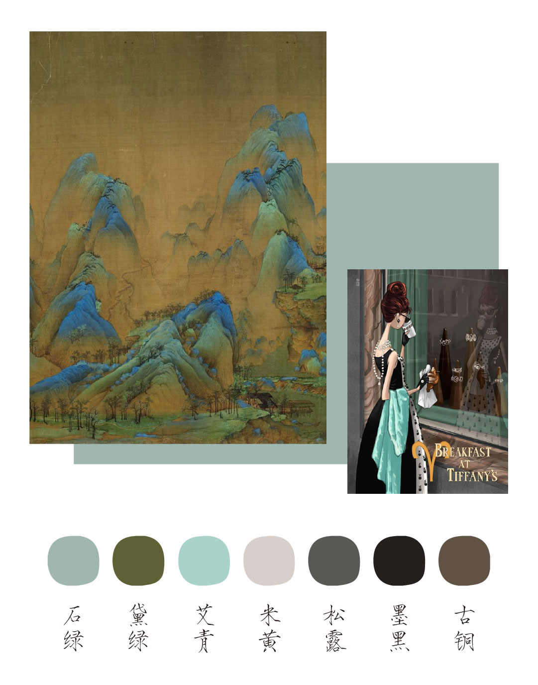 《千里江山圖》的石綠用到的是天然礦石-孔雀石或綠松石,而進入現(xiàn)代社會后的2001年,Tiffany公司與Pantone公司合作,通過科技與技術(shù)的手段創(chuàng)造出了"1837藍",也就是后來為大眾所熟知的"Tiffany藍"。