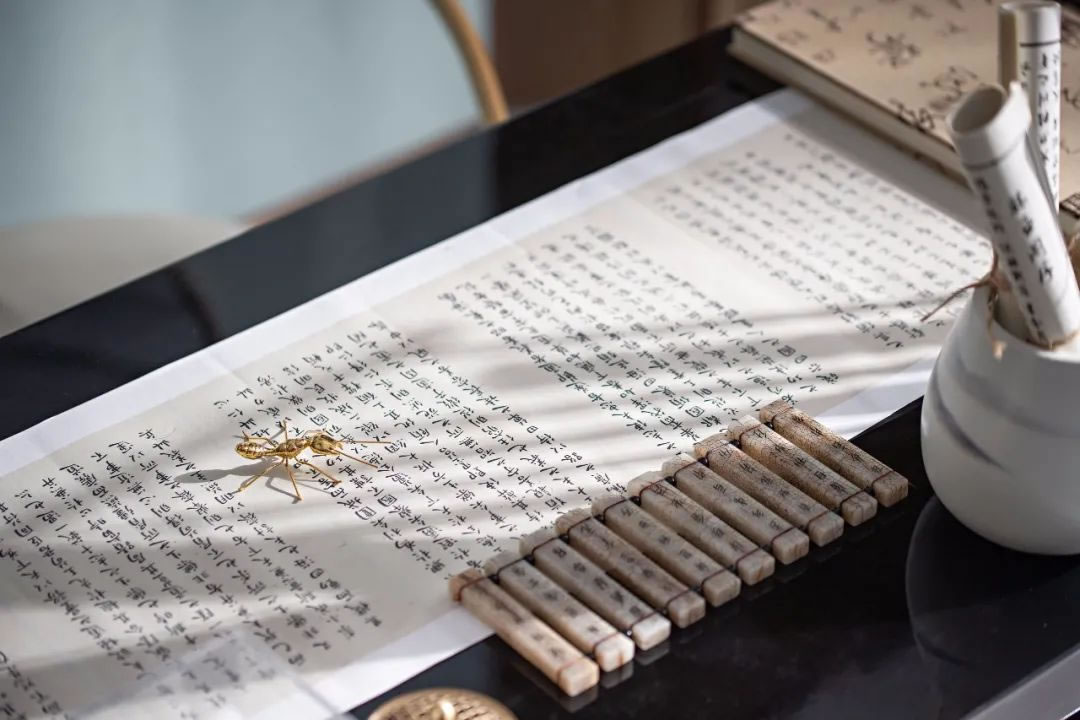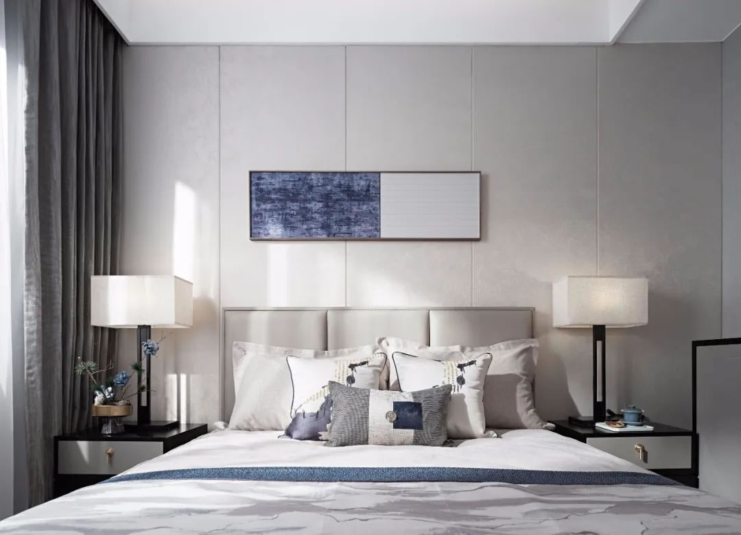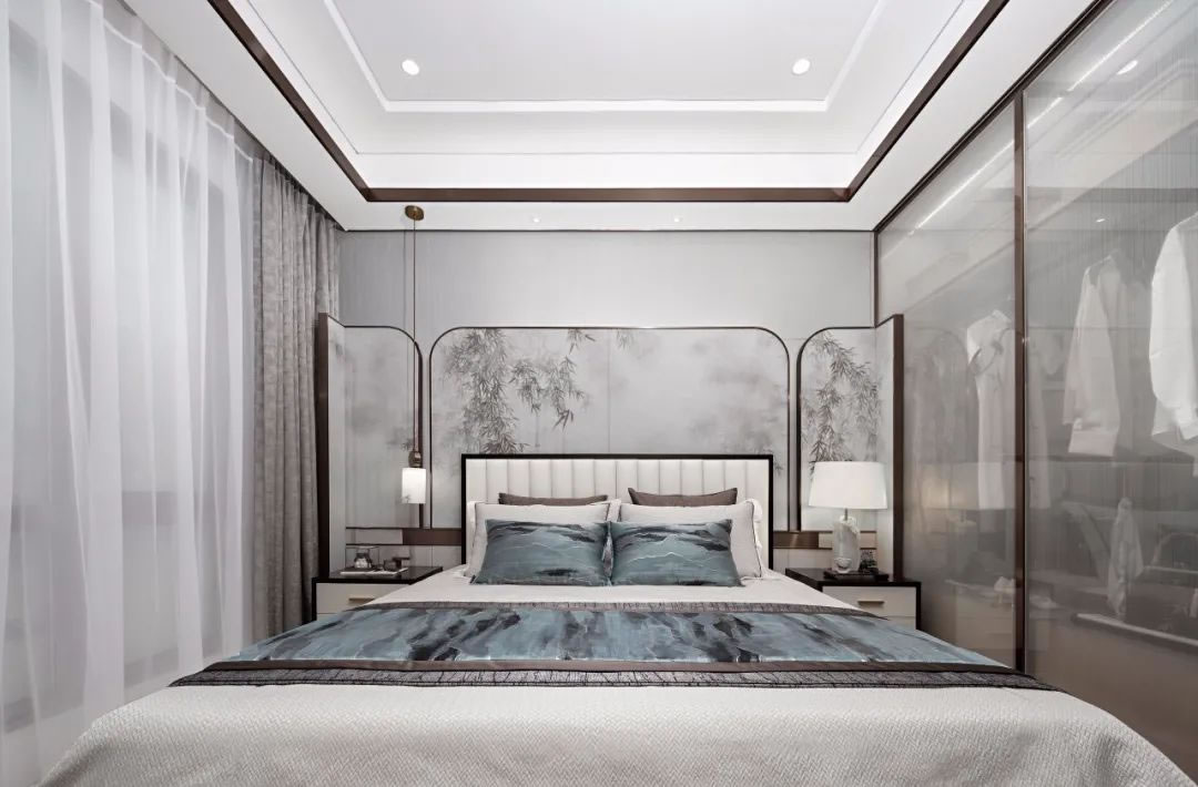 主臥丨浮白在空間的氣場流動中貫穿始終,是布景的竹韻水墨,是壁畫的儀式色彩,是靜物的多維神韻,在東方韻律的表達和秩序的營造中既柔和又秀美,帶著傳統(tǒng)形態(tài)的載