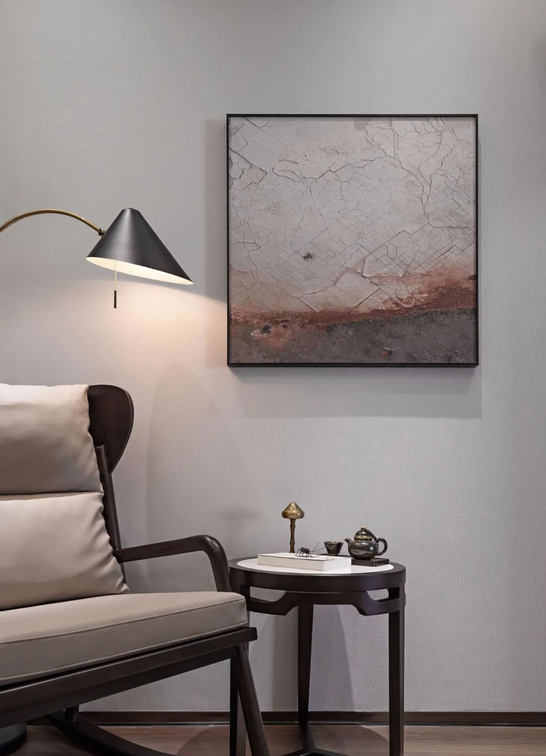 多功能房丨休憩的一隅透漏著柔和的寧靜,少而美的簡單區(qū)隔,讓這里成為了跨越時間和空間的美學沉浸,木的氣韻傳遞著東方的神韻,畫的布景傳達著空間的意境,而燈下的居者享受著屬于自我的時光靜謐。