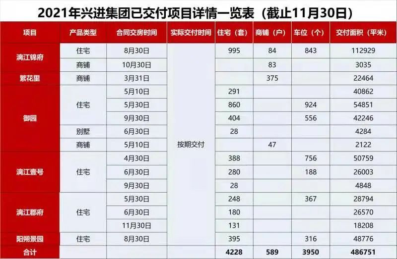 截止2021年11月30日,旗下多個精品項目在今年陸續(xù)交付,興進(jìn)以實力兌現(xiàn)承諾,贏得市場和業(yè)主的一致認(rèn)可。