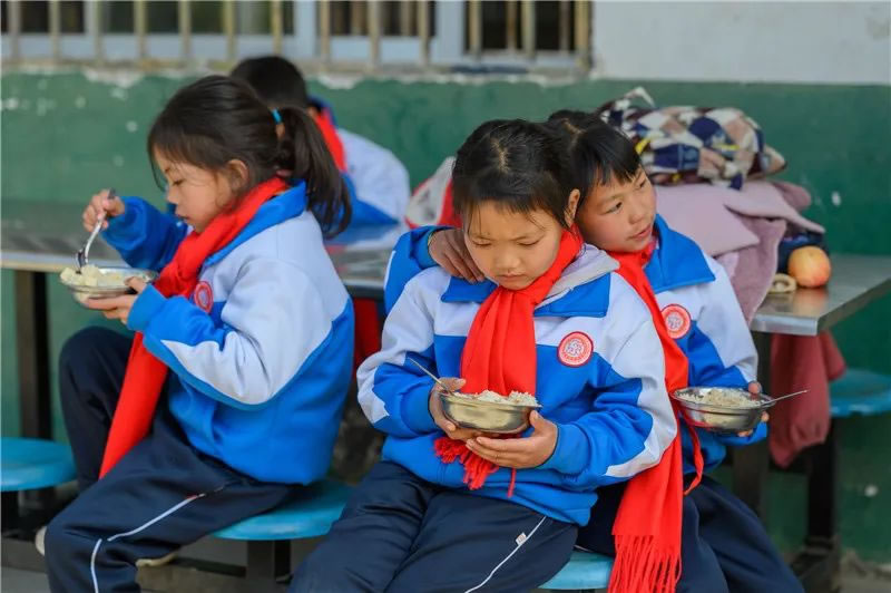 白嶺小學實景 由于父母不在身邊,過去很多孩子的午餐成為了一個大難題,有的孩子用紅薯饅頭等干糧將就,有的孩子甚至因為家里沒人幫忙準備干糧,還要自己走很遠的路回家做飯吃飯,連基本的溫飽都難以保障,更別提營養(yǎng)了。