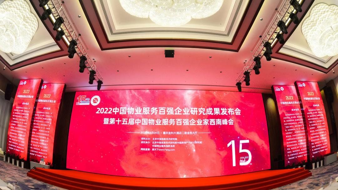 4月26日下午,由中指研究院、中國(guó)房地產(chǎn)TOP10研究組主辦的"2022中國(guó)物業(yè)服務(wù)百?gòu)?qiáng)企業(yè)研究成果發(fā)布會(huì)暨第十五屆中國(guó)物業(yè)服務(wù)百?gòu)?qiáng)企業(yè)家西南峰會(huì)"于重慶隆重召開(kāi)。