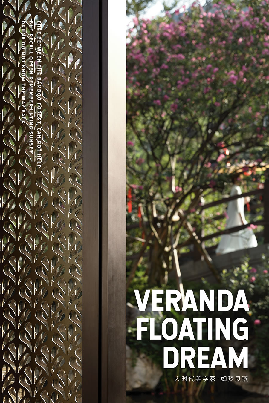 屏壁上鑲滿金屬竹葉,與室外園林的竹林形成聯(lián)系,映寫在山水名畫之中,營造出一種虛實寧靜的氛圍。