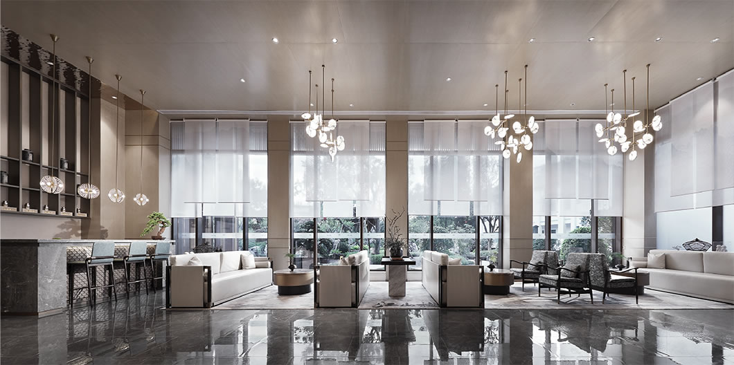 以古典和現(xiàn)代結(jié)合的設(shè)計手法、營造出別致的空間品味每一處風(fēng)物細(xì)水中的生靈氣韻,和鳴空間的起承轉(zhuǎn)合。