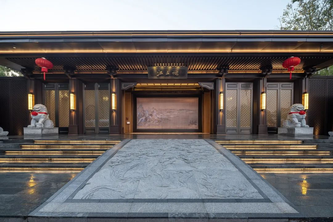 威嚴(yán)的石獅門當(dāng),山行紋理的戶對,以古蘇州園林建筑形態(tài)為藍(lán)本的大門,通過若水紋繪,講述一道中國家門的優(yōu)雅敘事。