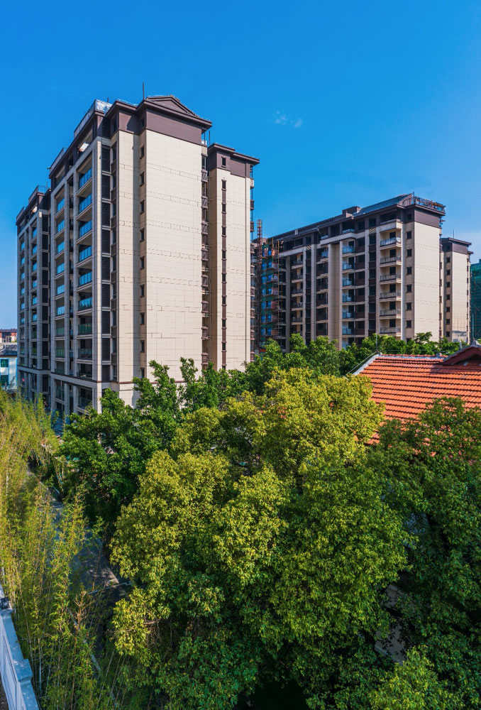 江山樾整個社區(qū)的打造,以"大隱于世,心藏萬物"為追求意趣,以百樹花木,小橋流水,呈現(xiàn)桃源世外的入境之感。