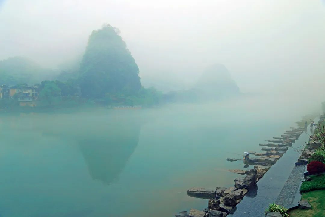 秋北京、夜上海、霧重慶、雨桂林,二月煙雨,讓漓江多了一份縹緲的美感,清風(fēng)拂過,云霧聚了又散、散了又聚,宛若一幅流動的水墨畫,令人嘆為觀止。