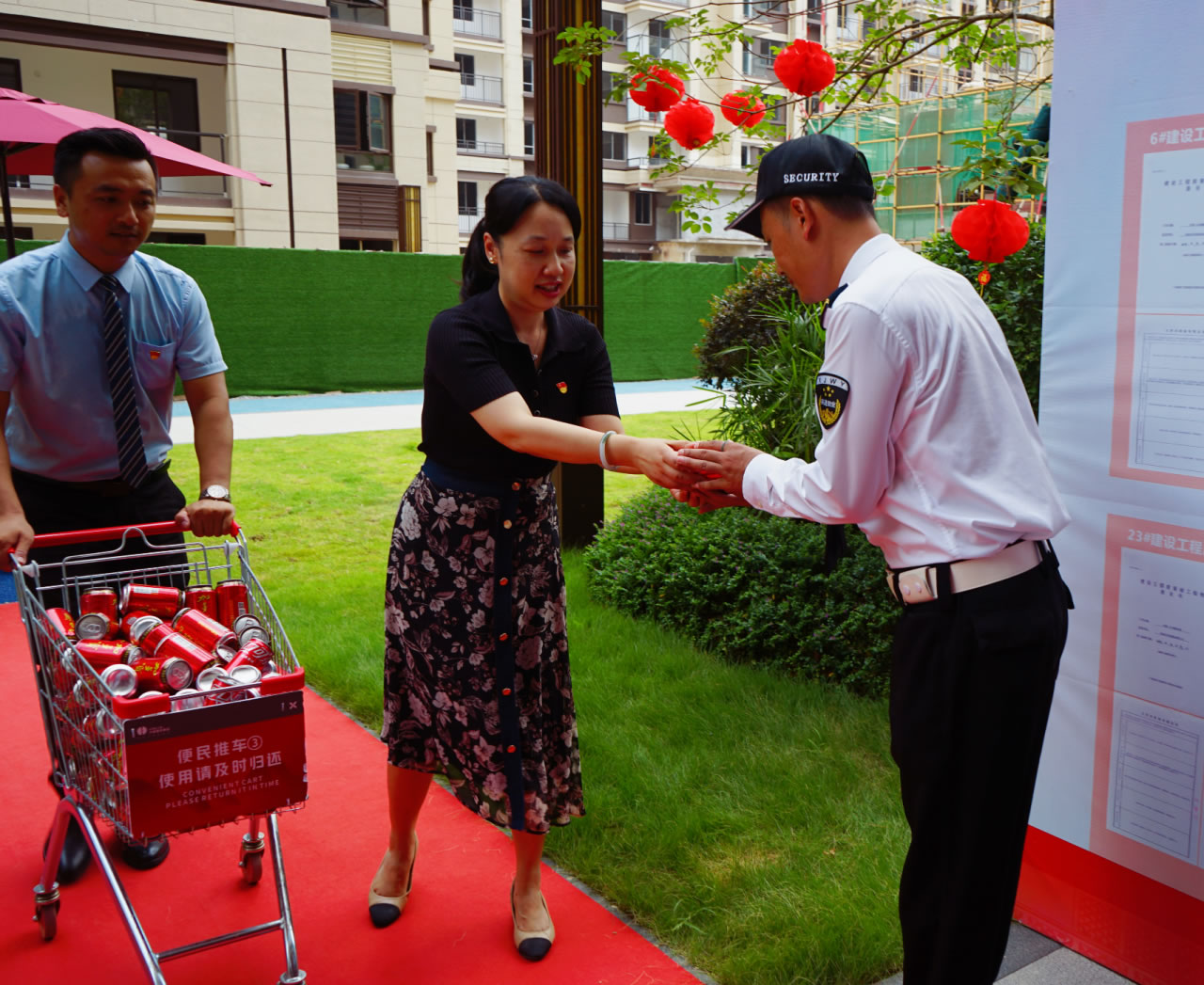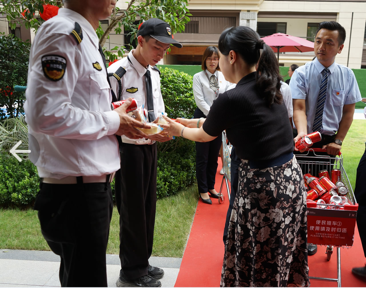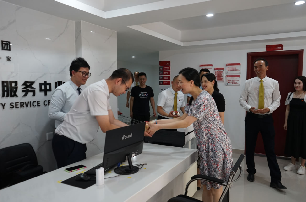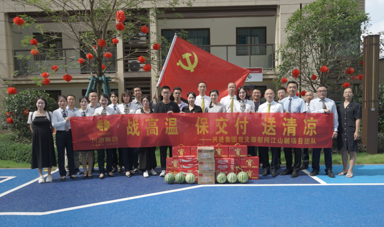 興進(jìn)集團(tuán)黨支部書記羅捷、集團(tuán)副總裁王敏、興進(jìn)物業(yè)服務(wù)集團(tuán)總經(jīng)理王永忠、集團(tuán)黨支部宣傳委員陳健帶領(lǐng)黨員代表一行,為奮戰(zhàn)在交付一線的項(xiàng)目、物業(yè)、營銷員工以及集團(tuán)交房支援人員送去解暑清涼慰問品,讓堅(jiān)守在崗位的一線員工們感受到絲絲清涼和濃濃關(guān)懷。