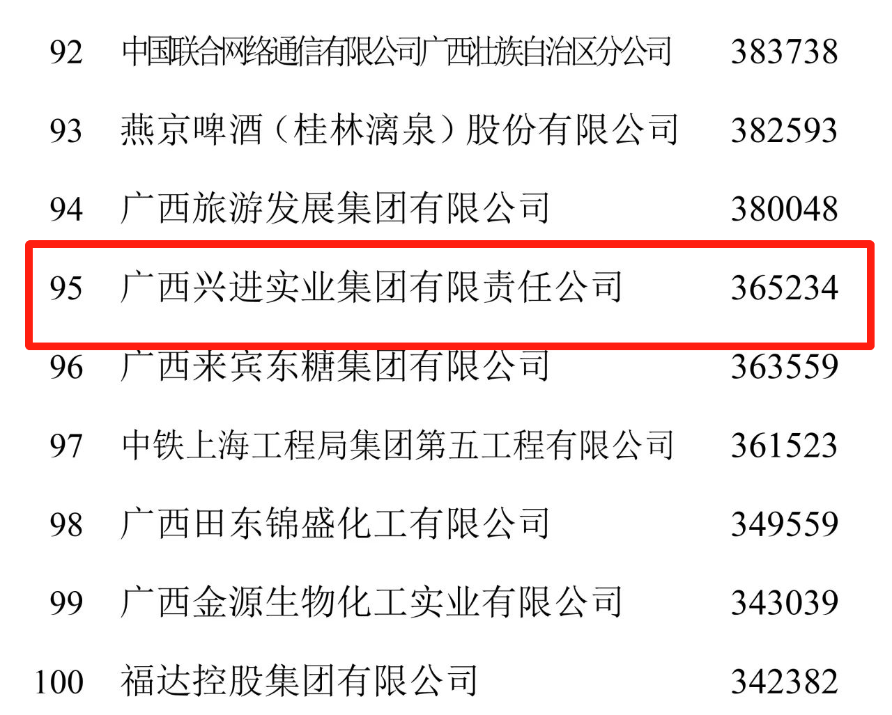 8月3日,興進(jìn)集團(tuán)憑借穩(wěn)健的兌現(xiàn)力、優(yōu)秀的服務(wù)力和極高的業(yè)主口碑,在廣西全行業(yè)企業(yè)的激烈競爭中,榮膺"2023廣西企業(yè)100強(qiáng)"、"廣西服務(wù)業(yè)企業(yè)50強(qiáng)"的榮譽(yù)。(數(shù)據(jù)來源:廣西企業(yè)與企業(yè)家聯(lián)合會)