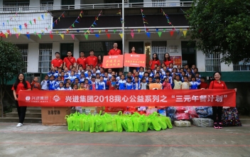 2014年5月28日,興進(jìn)集團(tuán)舉行3元午餐公益活動(dòng),再次走進(jìn)全州縣東山瑤族鄉(xiāng)白嶺小學(xué),為貧困山區(qū)兒童送去學(xué)習(xí)用品。