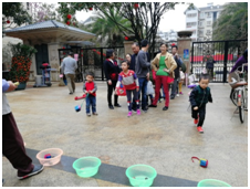 一位三歲的小女孩興致勃勃的來參加夾糖果游戲,雖然剛剛學會用筷子,不是很熟練,但她那那堅持不懈的精神真是值得大家敬佩。